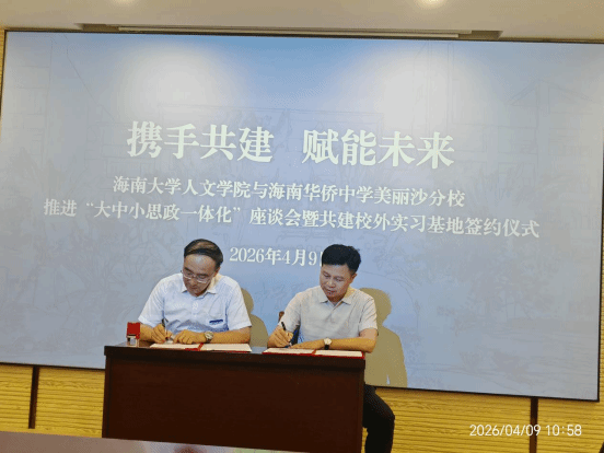 与海南华侨中学美丽沙分校举行推进“大中小学思政课一体化”座谈会暨共建校外实习基地签约仪式。海南华侨中学美丽沙分校党支部书记、校长李国辉,专职副书记张田喜,副校长吴运磊,小狐狸视频