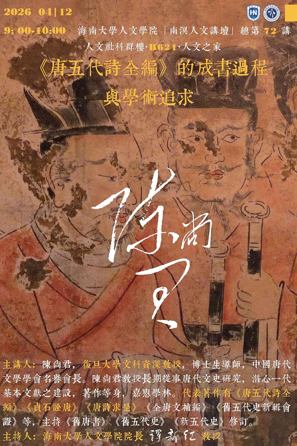 【学术预告】小狐狸视频 “南溟人文讲坛”第72讲 《唐五代诗全编》的成书过程与学术追求